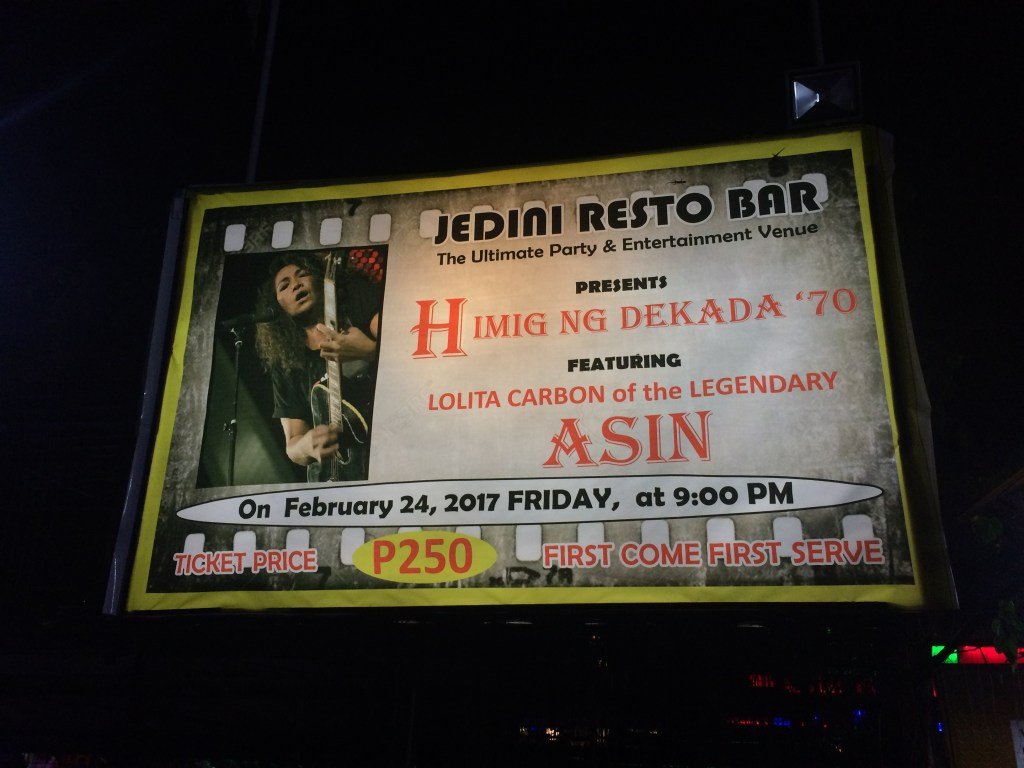 I’m a true music enthusiast, and I have a special fondness for old songs from iconic bands like Westlife, Backstreet Boys, Carpenters, and more. However, recently, I embarked on a delightful journey to explore the hit songs that reigned supreme during my mother’s era. So, when she invited me to join our family last night for a live performance by “Asin,” featuring the renowned vocalist Lolita Carbon, at Jedini Resto-Bar nearby, I couldn’t resist the opportunity. “Asin” is a revered Pinoy folk rock band that has made its mark in the Philippines’ music scene. They initially started as a trio in the late 1970s, originally bearing the name “Salt of the Earth.” “Asin” is the Filipino word for salt. Stepping into Jedini Resto-Bar for the first time, I found it to be a cozy albeit somewhat small place, but it was definitely manageable. The only downside was the prices of the food, which seemed a bit on the higher side. Their nachos, in particular, didn’t meet my taste expectations, as they had an unusual aftertaste. …